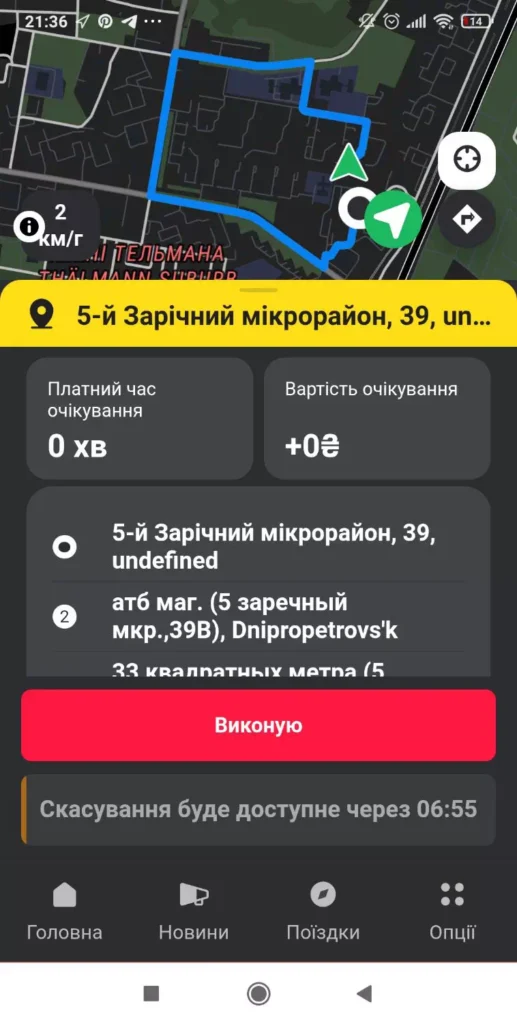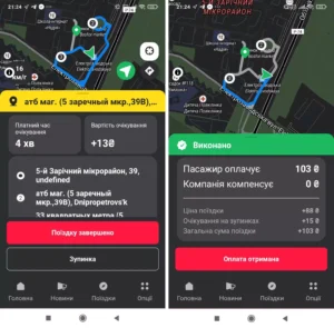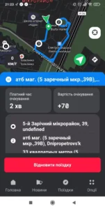 Простій під час поїздки: Якщо пасажир попросив вас зупинитися на маршруті, ви можете увімкнути платне очікування. Для цього натисніть кнопку “Зупинка”. Таймер простою почне відлік, і буде нараховано плату.